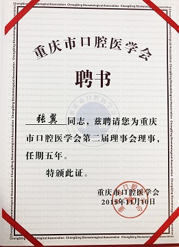 张翼聘为重庆市口腔医学会第二届理事会理事