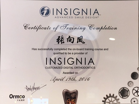 张向凤获 insignia培训结业证书
