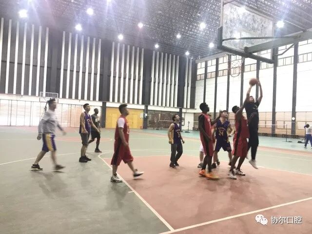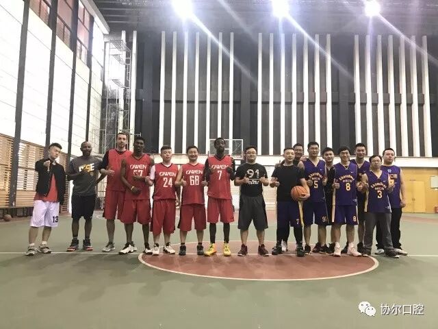 周二下午,协尔口腔与欧文英语在蓝湖郡体院中心篮球馆进行了一场篮球友谊赛。